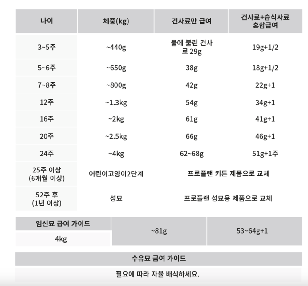 어린 고양이는 별도로 판매되는 어린 고양이용 사료를 구분하여 급여하여 주시기 바랍니다.