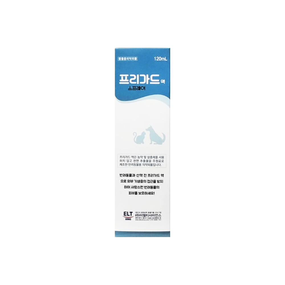 프리가드 액은 농약 및 살충제를 사용하지 않고 천연 추출물을 주원료로 제조한 반려동물용 의약외품입니다.